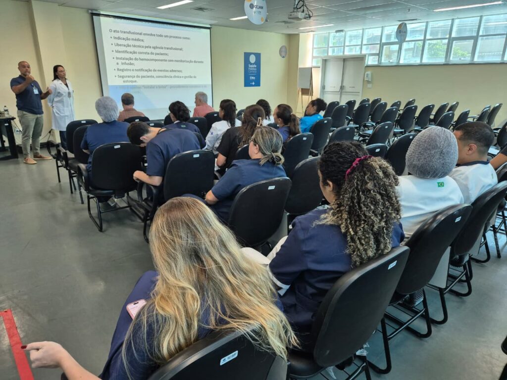 Durante a atividade, foram abordadas orientações técnicas e atualizações sobre o uso adequado de sangue e hemocomponentes, reforçando a importância da prática segura, criteriosa e baseada em evidências no contexto hospitalar. A discussão contribuiu para o aprimoramento das condutas assistenciais e para a qualificação dos processos relacionados à terapia transfusional.